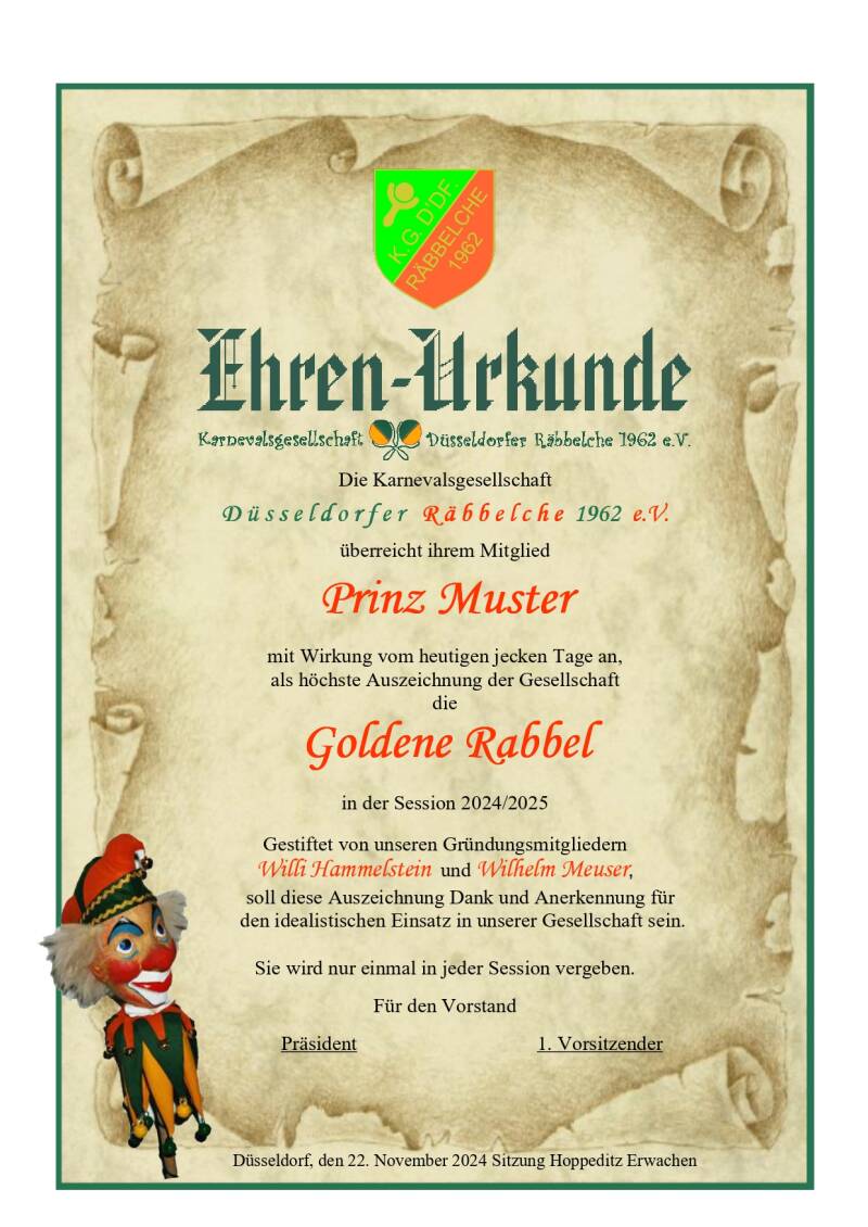 Die höchste Auszeichnung bei uns Räbbelche die “goldene Rabbel”.